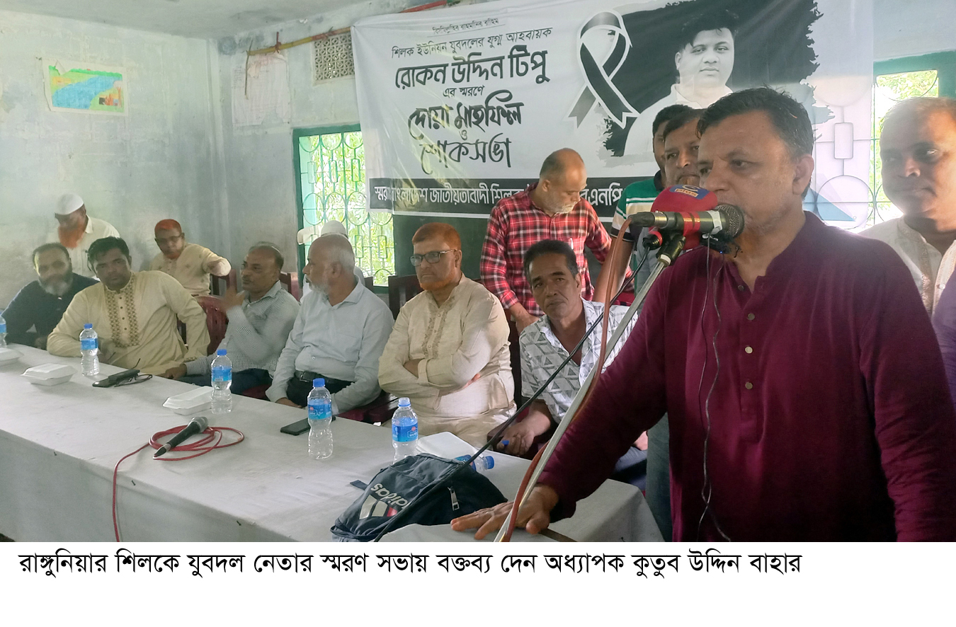রাঙ্গুনিয়া উপজেলা বিএনপি’র আহবায়ক অধ্যাপক কুতুব উদ্দিন বাহার বলেছেন,‘ সুখে—দুখে সব সময় মানুষের পাশে ছিলাম ভবিষ্যতেও পাশে থাকবো। আমি নেতা হতে আসিনি, আপনাদের সেবক হতে এসেছি।’ শনিবার (৫ জুলাই) দুপুরে উপজেলার পদুয়া ইউনিয়নের ফকিরটিলা নতুনপাড়া জামে মসজিদ নির্মাণে জালাল উদ্দিন মদিনা ফাউন্ডেশনের আর্থিক অনুদান প্রদান অনুষ্ঠানে প্রধান অতিথি’র বক্তব্যে তিনি একথা বলেন। এই উপলক্ষে মসজিদ মাঠে আয়োজিত সভায় প্রধান অতিথির বক্তব্যে তিনি সম্পূর্ণ মসজিদ নির্মানে সার্বিক সহায়তার আশ্বাস দেন। পদুয়া ইউনিয়ন বিএনপির আহবায়ক শহীদুল্লাহ কাইছার দুলু ও সদস্য সচিব ডা. শায়ের আহম্মেদসহ পদুয়া ইউনিয়নের বিভিন্ন স্তরের বিএনপি নেতৃবৃন্দ অনুষ্ঠানে উপস্থিত ছিলেন। পরে দক্ষিণ শিলক এম শাহ আলম চৌধুরী উচ্চ বিদ্যালয়ের হলরুমে আয়োজিত শিলক ইউনিয়ন যুবদল নেতা রোকন উদ্দিন টিপুর স্মরণ সভায় প্রধান অতিথি হিসেবে যোগ দেন তিনি। এসময় অধ্যাপক কুতুব উদ্দিন বাহার দলের দু:সময়ে টিপুর অবদান ও ত্যাগের কথা তুলে ধরে তার পরিবারের পাশে থাকবেন বলেও জানান। সভায় সভাপতিত্ব করেন শিলক ইউনিয়ন বিএনপির সদস্য সচিব আব্দুল মোতালেব বানু। শিলক ইউনিয়ন যুবদলের আহবায়ক এবিএম আজম খানের সঞ্চালনায় সভায় বিশেষ অতিথির বক্তব্য দেন উপজেলা বিএনপির সাবেক সভাপতি নবাব মিয়া চেয়ারম্যান, সিনিয়র যুগ্ম আহবায়ক ফজলুল হক, সদস্য গাজী মোহাম্মদ আইয়ুব, চট্টগ্রাম উত্তরজেলা কৃষক দলের সাবেক সাংগঠনিক সম্পাদক নাছির উদ্দিন মেম্বার, সরফভাটা বিএনপির সভাপতি জাহাঙ্গীর আলম, নাছির উদ্দীন, কোদালা ইউনিয়ন বিএনপি'র আহবায়ক শামসুল আলম কোম্পানী, সদস্য সচিব জাহাঙ্গীর মোস্তফা, চন্দ্রঘোনা বিএনপি'র সদস্য সচিব আব্দুস সালাম, ফজলুল হক মেম্বার, ইসমাইল হোসেন, মো. হাসেম, আমিনুল হক, উপজেলা যুবদলের আহবায়ক মো. সেকান্দর সওদাগর, যুগ্ম আহবায়ক মোজাফফর চৌধুরী, দক্ষিণ রাঙ্গুনিয়া থানা যুবদলের আহবায়ক শাহজাহান সিকদার, উপজেলা স্বেচ্ছাসেবক দলের সাধারণ সম্পাদক আলী নূর তালুকদার মনি, পৌর ছাত্রদলের আহবায়ক সাইফুদ্দিন তালুকদার, দক্ষিণ রাঙ্গুনিয়া থানা যুবদলের যুগ্ম আহবায়ক মিজানুর রহমান, যুবদল নেতা মো. আজম, মো. মিজান, মো. ফোরকান, মো. এরফান, মো. মাসুদ, মো. কাঞ্চন, মো. দিদার মেম্বার, নুরুল আবছার, স্বেচ্ছাসেবক দল নেতা মো. মুসলিম, মো. ওয়াহিদ, মো. সিরাজ, মো. সেলিম, নাজের,  ছাত্রদল নেতা মীর জোবাইদুল ইসলাম রনি, মো. কাইয়ুম, মো. ইমরান, মো. শওকত, মো. মুসাফির, মো. রাসেল প্রমুখ। এদিকে অধ্যাপক কুতুব উদ্দিন বাহার দক্ষিণ রাঙ্গুনিয়ায় যাওয়ার পথে হাজারো নেতাকর্মী মিছিল দিয়ে তাকে স্বাগত জানান ও  ফুল দিয়ে বরণ করে নেন।