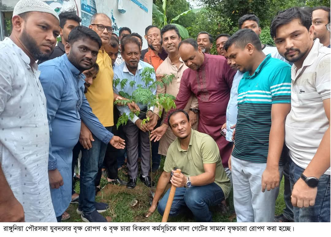 বৃক্ষরোপণ কর্মসূচির অংশ হিসেবে চট্টগ্রাম উত্তর জেলা যুবদলের সাধারণ সম্পাদক এস এ মুরাদ চৌধুরী'র তত্ত্বাবধানে রাঙ্গুনিয়া পৌরসভা যুবদলের সার্বিক ব্যবস্থাপনায় বৃক্ষরোপণ ও বিতরণ কর্মসূচি করা হয়েছে। শনিবার (৫ জুলাই) বিকালে রাঙ্গুনিয়া মডেল থানার সামনে গুমাই মার্কেট চত্বরে কর্মসূচির শুরুতে সংক্ষিপ্ত সমাবেশ অনুষ্ঠিত হয়।
