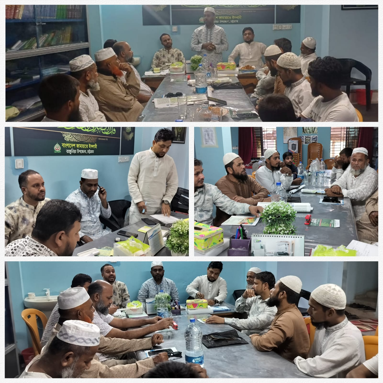 শুক্রবার (১১ জুলাই)বিকেলে রাঙ্গৃনিয়া শ্রমিক কল্যাণ ফেডারেশন এর মাসিক বৈঠক অনুষ্ঠিত হয়। উপজেলা কার্যালয় উপজেলা শ্রমিক কল্যাণ ফেডারেশনের সাধারণ সম্পাদক মুহাম্মদ ইয়াকুব হোসেন তসলিম এর সঞ্চালনায় ও উপজেলা শ্রমিক কল্যাণ ফেডারেশন এর সভাপতি মুহাম্মদ রাশেদুল আলম এর সভাপতিত্বে প্রোগ্রামে প্রধান অতিথি ছিলেন চট্টগ্রাম উত্তর শ্রমিক কল্যাণ ফেডারেশন এর কোষাধ্যক্ষ মুহাম্মদ হারুন অর রশীদ।তিনি ইউনিয়নের মাসিক রিপোর্ট পর্যালোচনা করে সমাপনী বক্তব্য আলোচনায় বলেন, ইসলাম শ্রমিকদের শোষণ ও অন্যায়ের বিরুদ্ধে সোচ্চার হতে উৎসাহিত করে। শ্রমিক আন্দোলন শোষণের বিরুদ্ধে একটি প্রতিরোধ ব্যবস্থা হিসেবে কাজ করে এবং শ্রমিকদের অধিকার আদায়ে সহায়তা করে। এবং তিনি শ্রমিকের অধিকার প্রতিষ্ঠা,শোষণের বিরুদ্ধে প্রতিরোধ,মালিক-শ্রমিক সম্পর্ক উন্নয়ন,নৈতিক ও মানবিক মূল্যবোধের প্রসারসহ ইসলামে শ্রমিক আন্দোলনের গুরুত্বের বেশকয়েকটি দিক নিয়ে আলোচনা করেন।