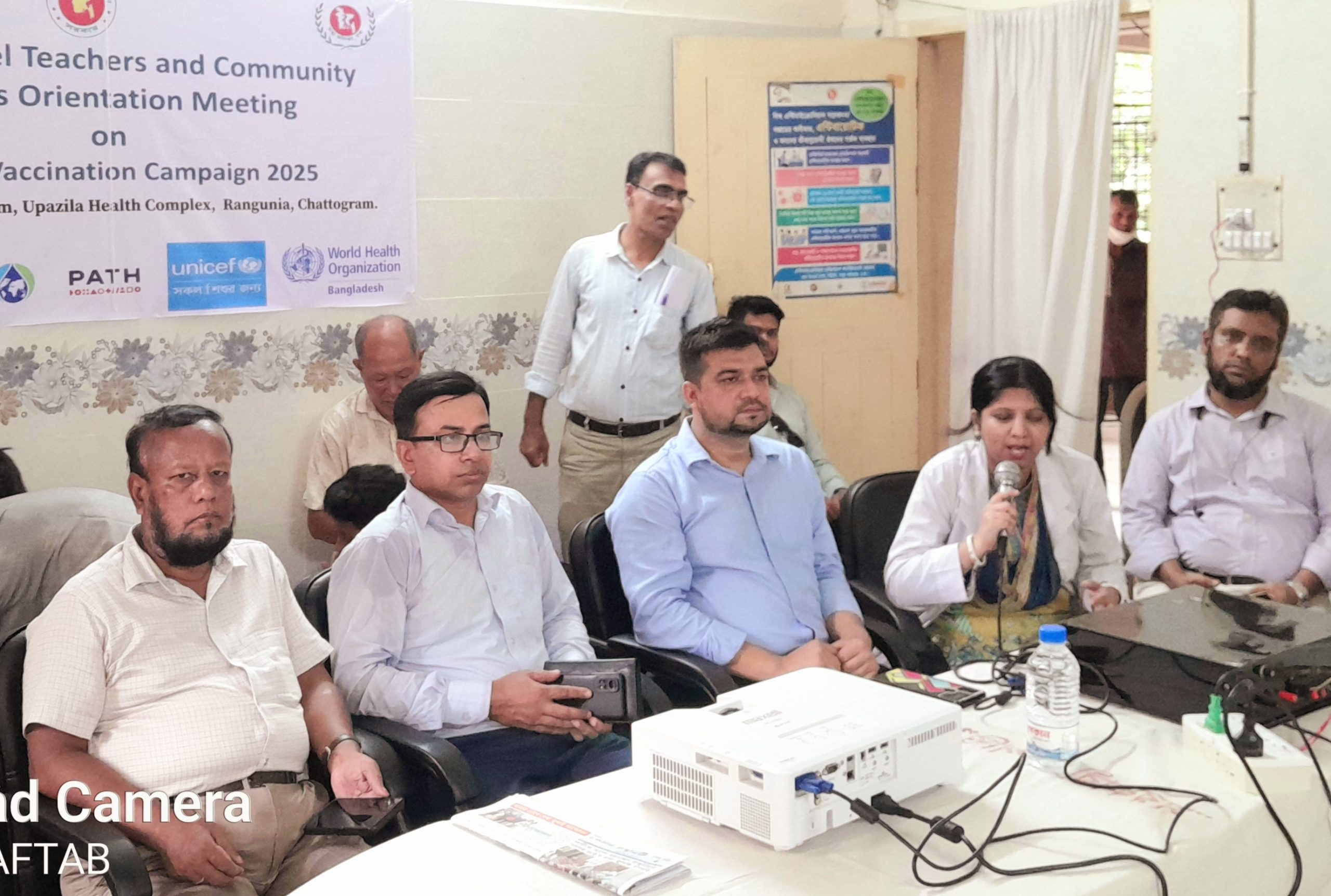 রাঙ্গুনিয়া উপজেলায় টাইফয়েড টিকাদান ক্যাম্পেইন উপলক্ষে ওরিয়েন্টেশন অনুষ্ঠিত হয়েছে। বৃহষ্পতিবার (১৪ আগস্ট) সকালে উপজেলা পরিষদ মিলনায়তনে আয়োজিত অনুষ্ঠানে বিভিন্ন শিক্ষা প্রতিষ্ঠানের শিক্ষক ও কমিউনিটি লিডাররা অংশ নেন।