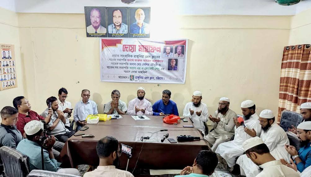 রাঙ্গুনিয়া প্রেস ক্লাবের উদ্যোগে প্রয়াত সাংবাদিক সাবেক সভাপতি ফারুক আহমদ তালুকদার, মো. সেলিম চৌধুরী ও সাবেক সহ সভাপতি এম এ কোরেশী শেলুর স্মরণে দোয়া মাহফিল অনুষ্ঠিত হয়েছে। মঙ্গলবার (১৬ সেপ্টেম্বর) বিকেলে প্রেস ক্লাব হলরুমে এ মাহফিলের আয়োজন করা হয়।