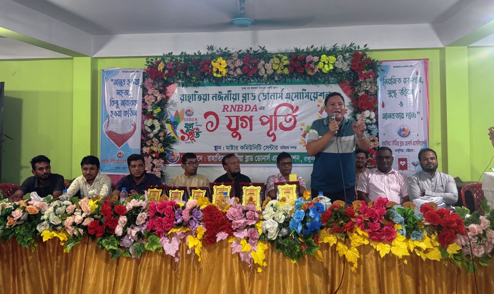 রাঙ্গুনিয়ার মানবিক স্বেচ্ছাসেবী সংগঠন রাহাতিয়া নঈমীয়া ব্লাড ডোনার্স এসোসিয়েশন-এর এক যুগ পূর্তি নানা আয়োজনে উদযাপিত হয়েছে। শনিবার (১৮ অক্টোবর) দিনব্যাপি উপজেলার মরিয়মনগরের একটি কমিউনিটি সেন্টারে অনুষ্ঠিত হয় রঙিন এই অনুষ্ঠান।