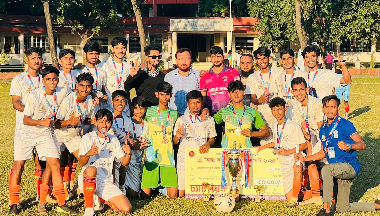 আব্বাস হোসাইন আফতাব : চট্টগ্রাম জেলা পর্যায়ের আন্তঃকলেজ ফুটবল টুর্নামেন্টের ফাইনাল যেন হয়ে উঠেছিল রাঙ্গুনিয়া সরকারি কলেজ দলের আত্মবিশ্বাস, শৃঙ্খলা ও আক্রমণাত্মক ফুটবলের প্রদর্শনী। বৃহস্পতিবার (২৭ নভেম্বর) বিকেলে সরকারি শারীরিক শিক্ষা কলেজ মাঠে অনুষ্ঠিত এই ম্যাচে ২–০ ব্যবধানে বোয়ালখালী স্যার আশুতোষ কলেজকে হারিয়ে চ্যাম্পিয়ন হয় রাঙ্গুনিয়া সরকারি কলেজ।