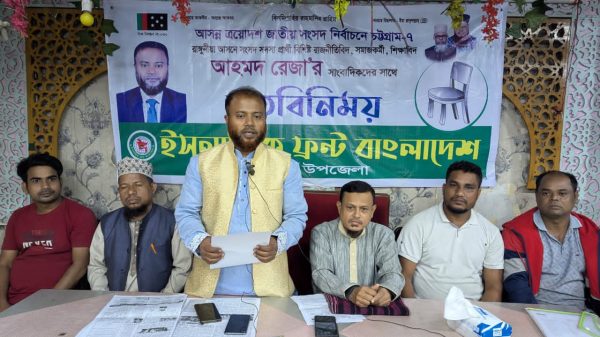 চট্টগ্রাম-৭ (রাঙ্গুনিয়া) আসনে আসন্ন ত্রয়োদশ জাতীয় সংসদ নির্বাচনকে সামনে রেখে ইসলামিক ফ্রন্ট বাংলাদেশ মনোনীত প্রার্থী এম আহমদ রেজা বুধবার (৩ ডিসেম্বর) স্থানীয় সাংবাদিকদের সঙ্গে মতবিনিময় করেন। ইসলামিক ফ্রন্ট বাংলাদেশ রাঙ্গুনিয়া