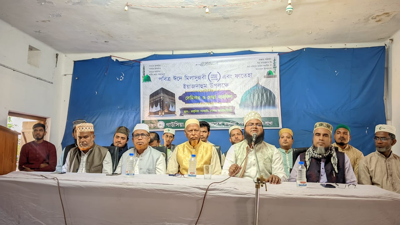 গাউছিয়া কমিটি বাংলাদেশ রাঙ্গুনিয়া সরকারি কলেজে শাখার উদ্যোগে পবিত্র ঈদে মিলাদুন্নবী (সা.) ও ফাতেহা ইয়াজদাহুম উপলক্ষে সেমিনার ও দোয়া মাহফিল শনিবার (৬ ডিসেম্বর) সকালে অনুষ্ঠিত হয়েছে। প্রধান অতিথি ছিলেন গাউসিয়া কমিটি রাঙ্গুনিয়া উপজেলা দক্ষিণ-মধ্যম শাখার সভাপতি নুর মুহাম্মদ মেম্বার। সভাপতিত্ব করেন রাঙ্গুনিয়া সরকারি কলেজ গাউছিয়া কমিটির সভাপতি মুহাম্মদ শহিদুল ইসলাম জিসান। প্রধান আলোচক ছিলেন আনজুমান রিসার্স সেন্টার এর পরিচালক মাওলানা মুহাম্মদ আবুল হাশেম। বিশেষ অতিথি ছিলেন উপজেলা গাউসিয়া কমিটির সাধারণ সম্পাদক মুহাম্মদ সারওয়ার,পৌরসভা গাউসিয়া কমিটির সাধারণ সম্পাদক আবদুস সবুর, যুগ্ম সম্পাদক মো. সালাউদ্দিন, রংধনু এন্টারপ্রাইজ এর পরিচালক মুহাম্মদ মাসুদুর রহমান, রাঙ্গুনিয়া সরকারি কলেজ এর শিক্ষক গোলাম মুস্তফা, গাউছিয়া কমিটি নেতা আবদুল জব্বার, মুহাম্মদ সাজেন ইমতিয়াজ সাকিব। অনুষ্ঠানের শেষে মিলাদ ও কিয়াম পরিচালনা করেন মাওলানা জিয়াউল হক। সঞ্চালনা করেন শিক্ষার্থী মুহাম্মদ কাউসার। উপস্থিত ছিলেন অনুষ্ঠান প্রস্তুতি কমিটির সচিব মুহাম্মদ আব্দুল্লাহ আল মাসুদ, মহিউল ইসলাম রিয়াদ প্রমুখ।