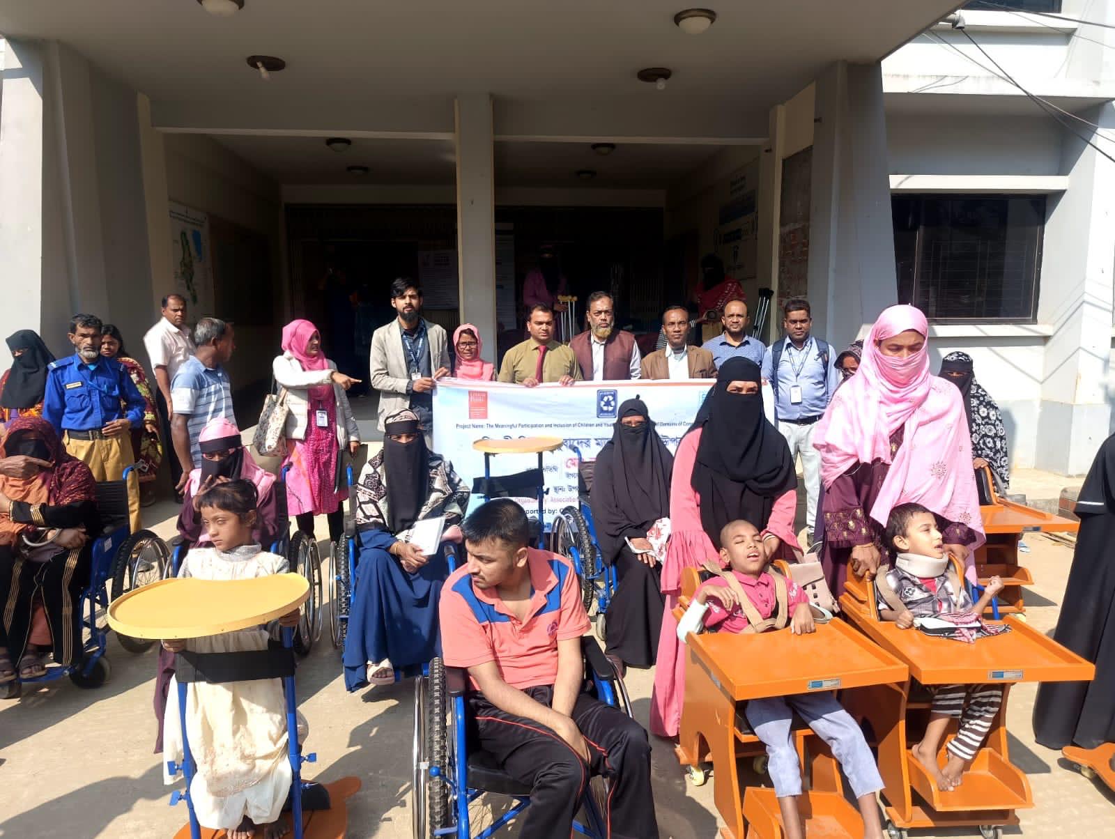 কর্মসূচির আওতায় ৩৬ জন প্রতিবন্ধী শিশু ও যুবার মধ্যে হুইলচেয়ার, স্ট্যান্ডিং ফ্রেম, বিশেষ সিটিং চেয়ার, বিশেষ টয়লেট চেয়ার ও এক্সিলারি ক্রাচসহ বিভিন্ন সহায়ক উপকরণ বিতরণ করা হয়।