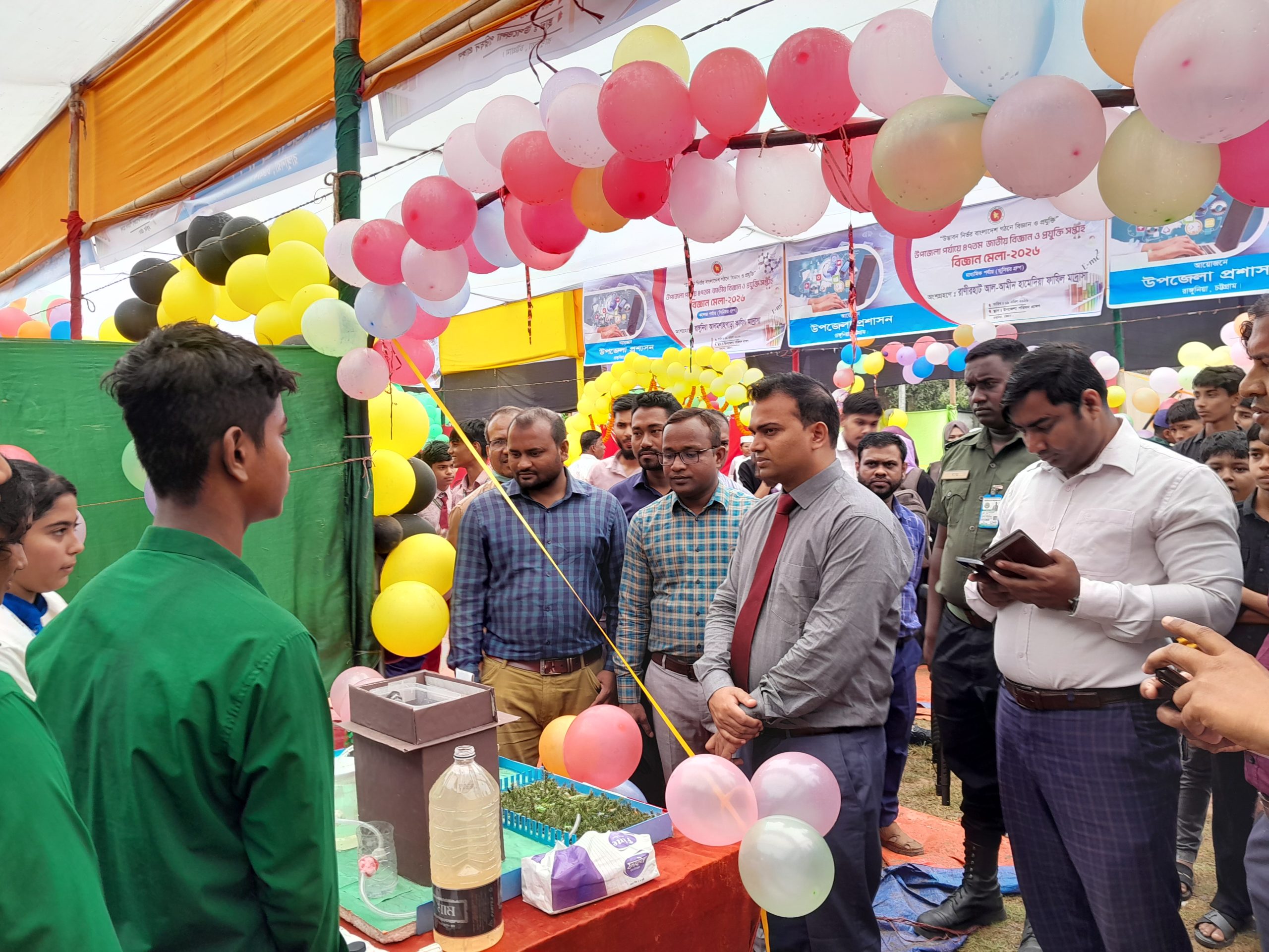 মেলায় বিভিন্ন শিক্ষাপ্রতিষ্ঠানের শিক্ষার্থীরা তাদের উদ্ভাবনী ও প্রযুক্তিভিত্তিক প্রকল্প প্রদর্শন করে। দিনব্যাপী আয়োজনে ছিল বিজ্ঞান প্রজেক্ট উপস্থাপন, বিজ্ঞান অলিম্পিয়াড ও বিজ্ঞান বিষয়ক কুইজ প্রতিযোগিতা। বিকেলে সমাপনী অনুষ্ঠান ও পুরস্কার বিতরণী অনুষ্ঠিত হয়। এতে সভাপতিত্ব করেন উপজেলা নির্বাহী কর্মকর্তা (ইউএনও) মো. নাজমুল হাসান। উপস্থিত ছিলেন সহকারী কমিশনার (ভূমি) দেবব্রত দাশসহ সংশ্লিষ্ট কর্মকর্তারা।