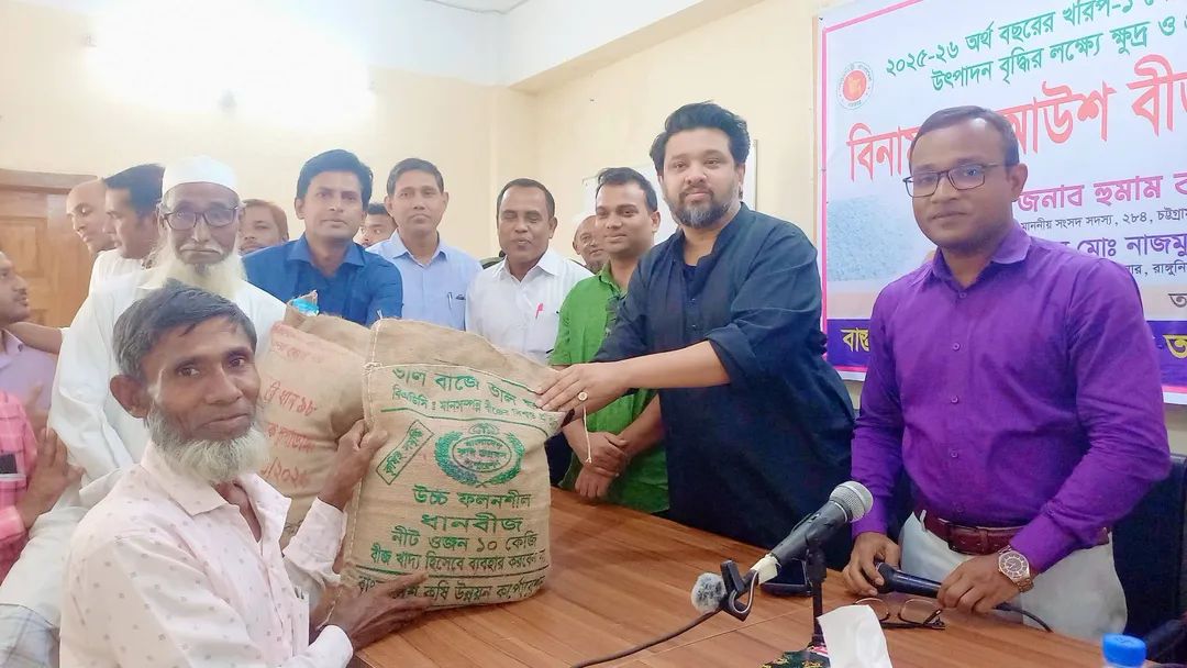 ২০২৫-২৬ অর্থবছরে খরিপ-১ মৌসুমে আউশ ফসলের উৎপাদন বৃদ্ধির লক্ষ্যে রাঙ্গুনিয়ায় ক্ষুদ্র ও প্রান্তিক কৃষকদের মাঝে বিনামূল্যে সার ও বীজ বিতরণ করা হয়েছে। কৃষি সম্প্রসারণ অধিদপ্তরের আয়োজনে উপজেলা কৃষি অফিসের হলরুমে আয়োজিত অনুষ্ঠানে প্রধান অতিথি হিসেবে উপস্থিত থেকে এই কার্যক্রমের উদ্বোধন করেন রাঙ্গুনিয়ার সংসদ সদস্য হুমাম কাদের চৌধুরী।